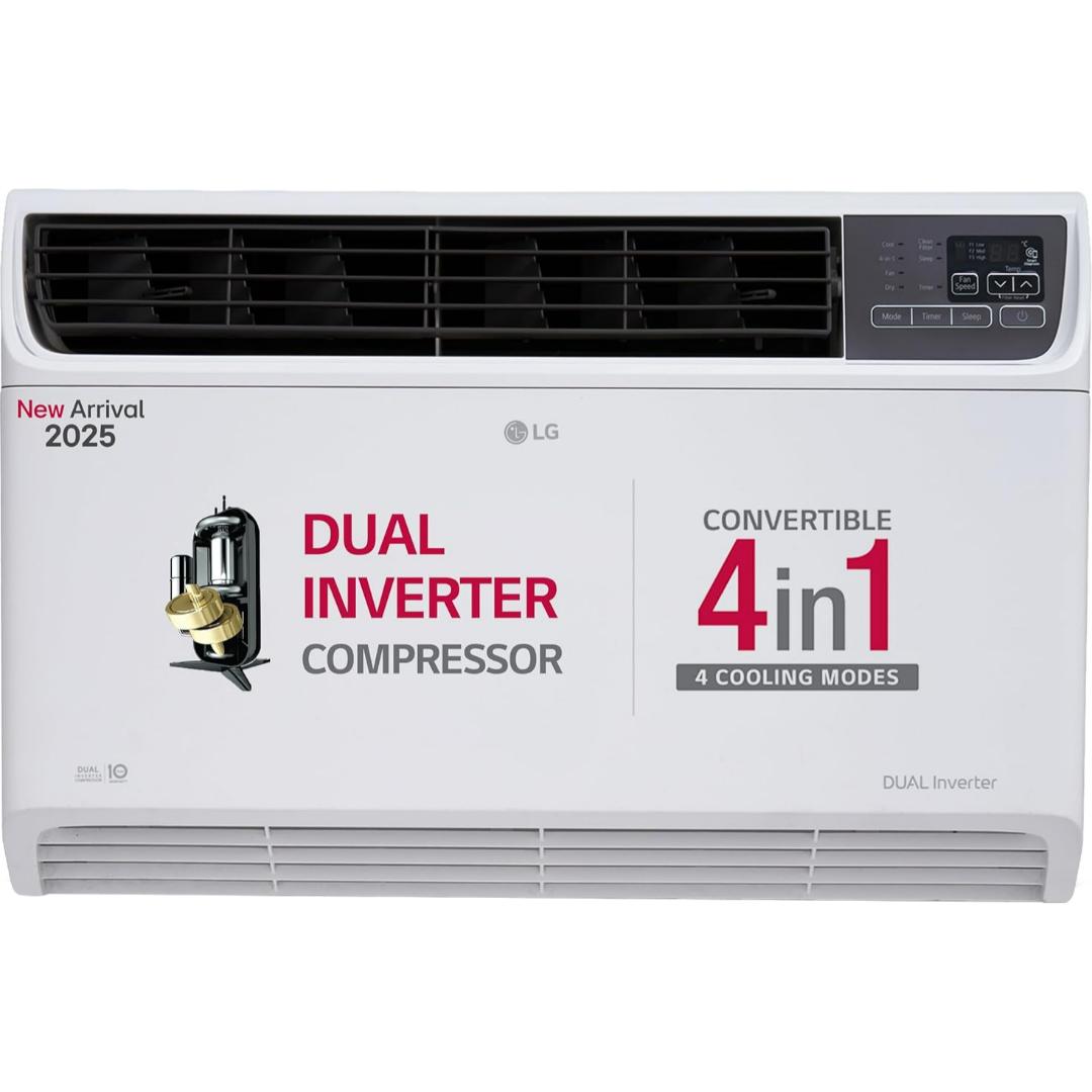 The LG 1.5-ton Dual Inverter Window Air Conditioner comes equipped with a Dual Inverter Compressor that adjusts the cooling speed based on your needs. Designed to provide efficient cooling in harsh weather conditions, this inverter split air conditioner provides optimal performance even at high temperatures up to 52°C. Featuring a Super Convertible 4-in-1 system, this 1.5-ton air conditioner offers flexibility to adjust the cooling capacity as per your requirement. Whether you need maximum cooling or energy savings, this feature caters to all needs. You can choose from 6 fan speed settings for optimal air circulation. You can easily adjust the fan speed to suit your comfort level which ensures an evenly distributed cool airflow across the room. The AC comes with a copper condenser, which ensures long-lasting durability and improved heat exchange efficiency. This enhances the overall cooling performance and longevity of the unit. Designed for durability, the LG air conditioner features a robust construction that ensures it can withstand daily use and perform consistently over time.