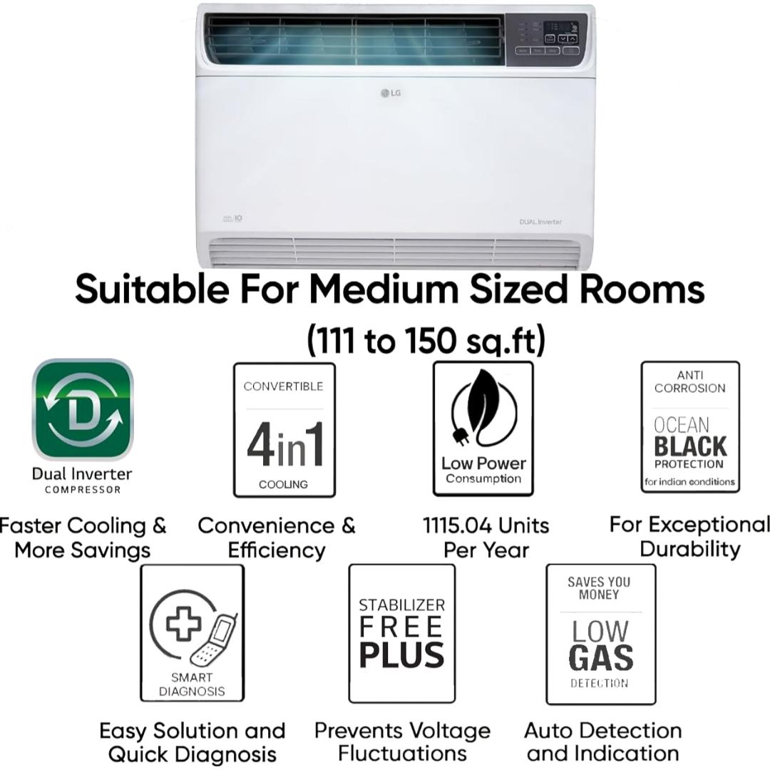 - Special Features: Dual Inverter Compressor, Remote Controlled, Convertible 4-in-1 Cooling, 100% Copper Tubes with Ocean Black Protection, Top Air Discharge, Clean Filter Indication