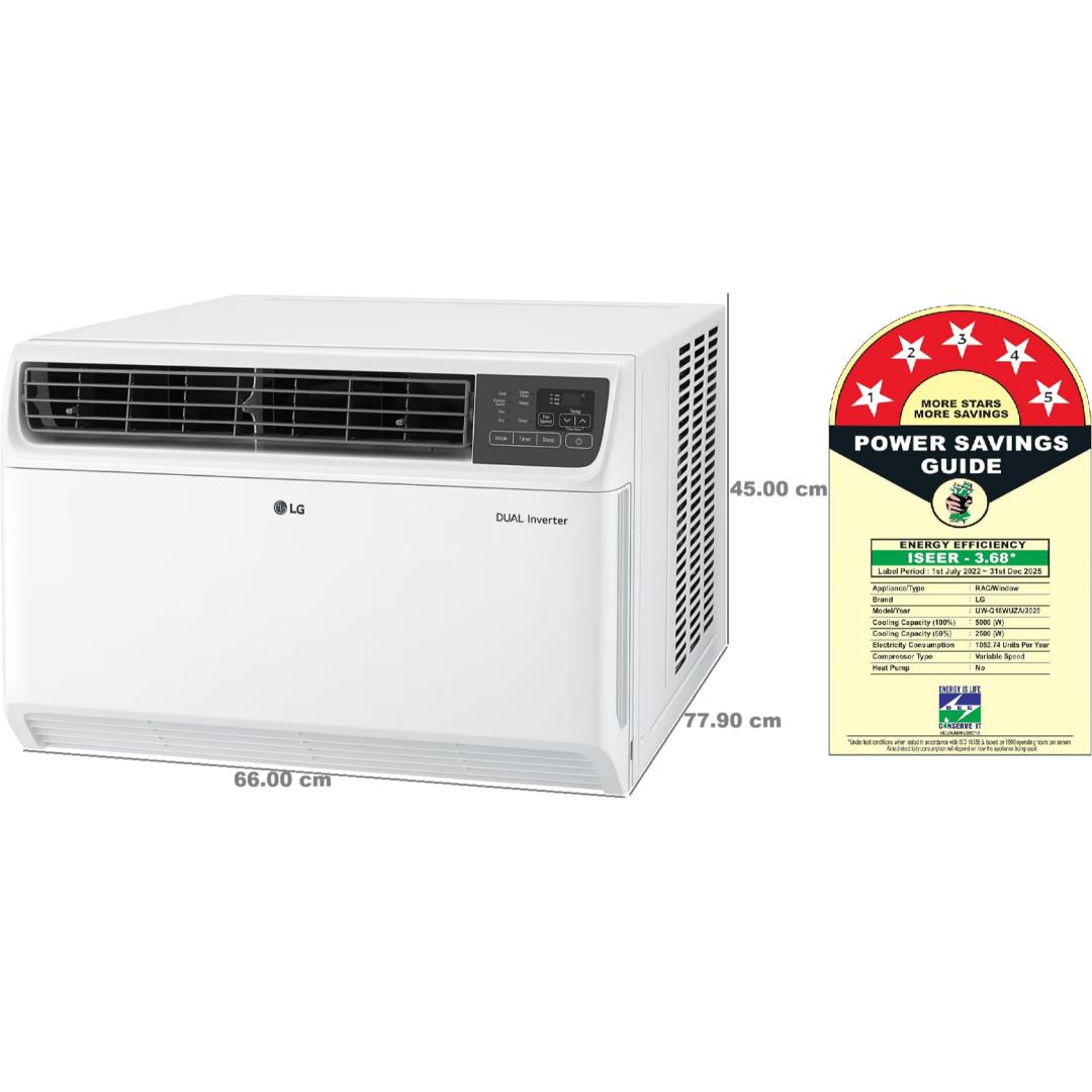 LG 1.5 T UW-Q18WUZA 5 Star Dual Inverter Convertible 4-in-1 Top Air Discharge Super Silent Operation 4-Way Swing HD Filter with Clean Filter Indication Window Air Conditioner (2025 Model, White)