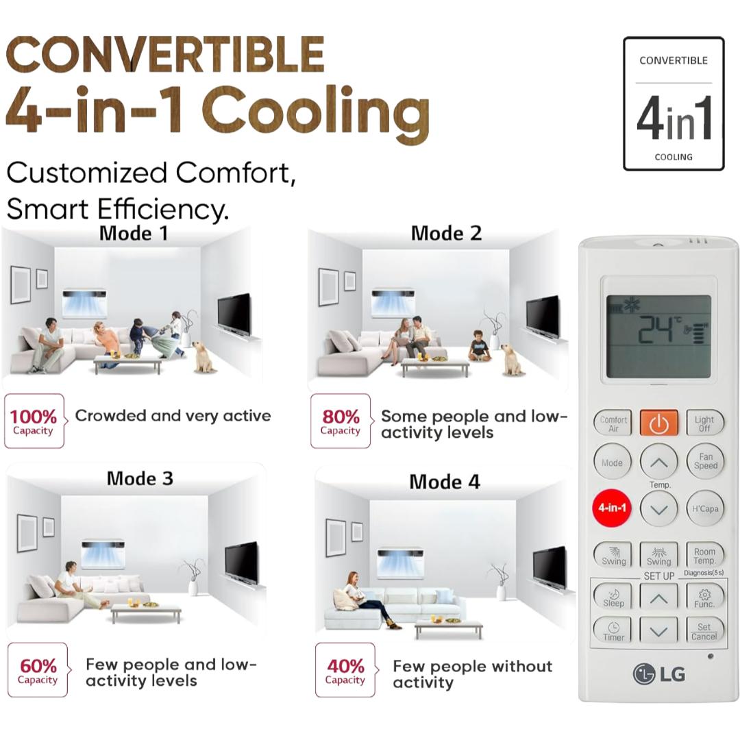 Convertible 4-in-1 Cooling: LG Convertible 4-in-1 Air Conditioner is a perfect example to our air conditioning requirements as and when required. The varied models ascertain that optimum usages of energy is ensured without any compromises on the comfort quotient.