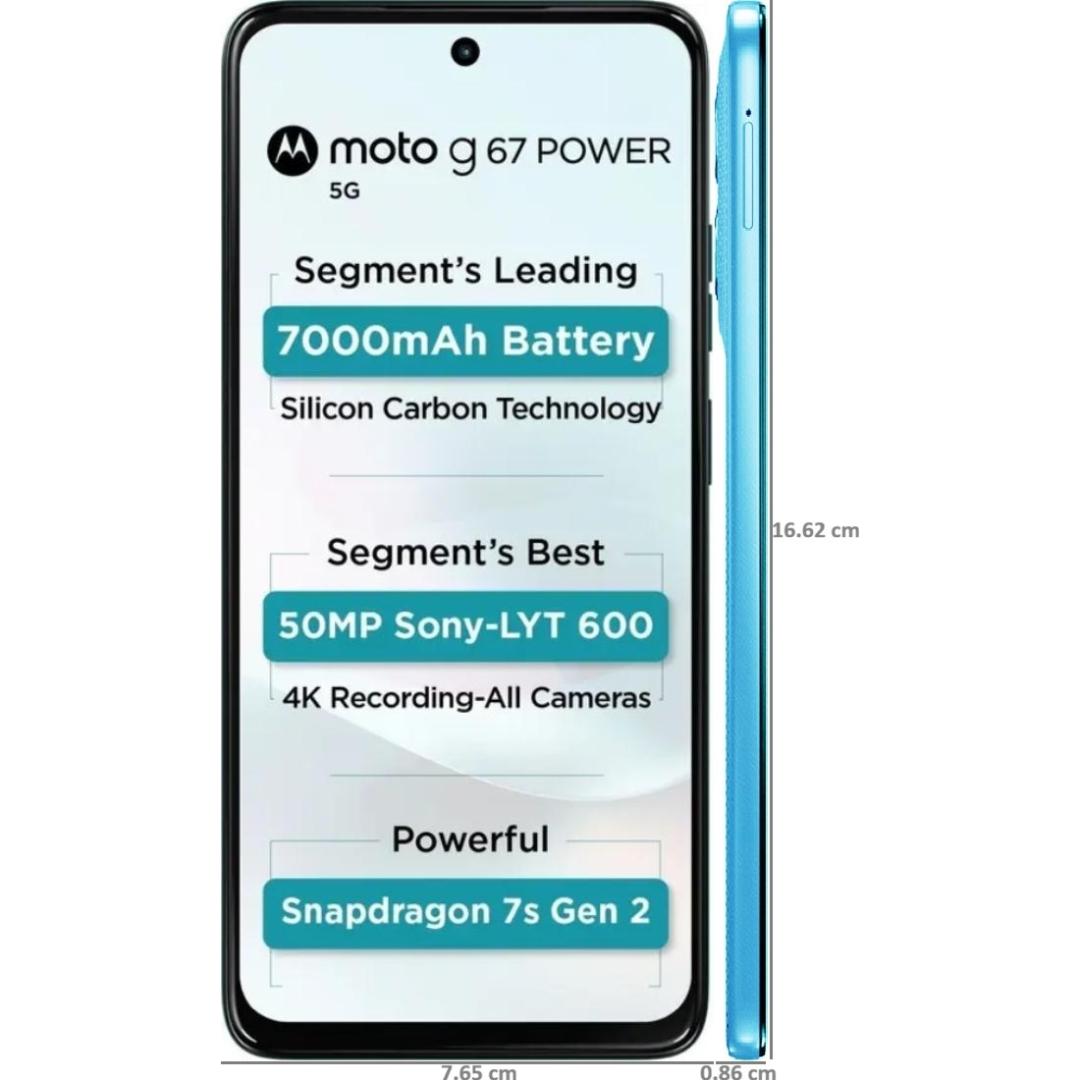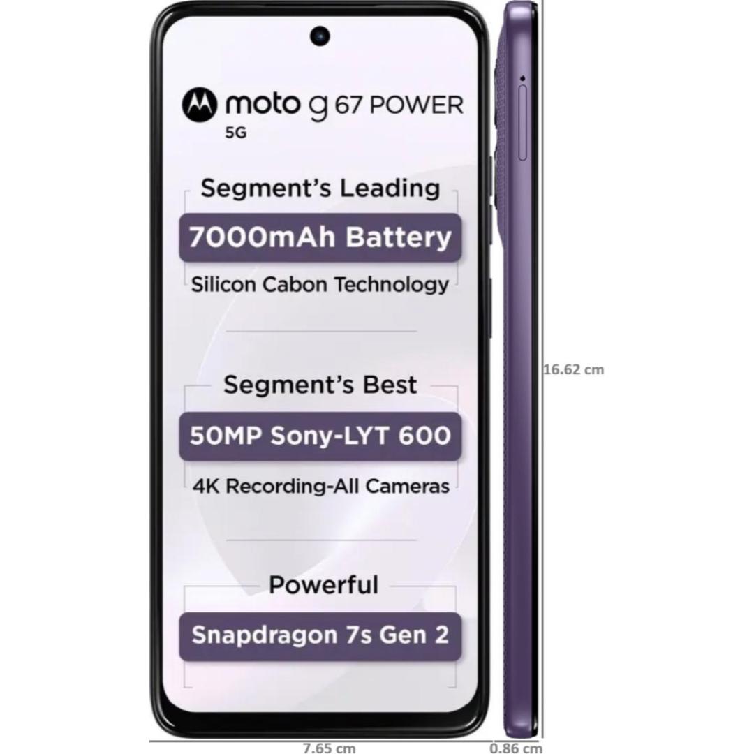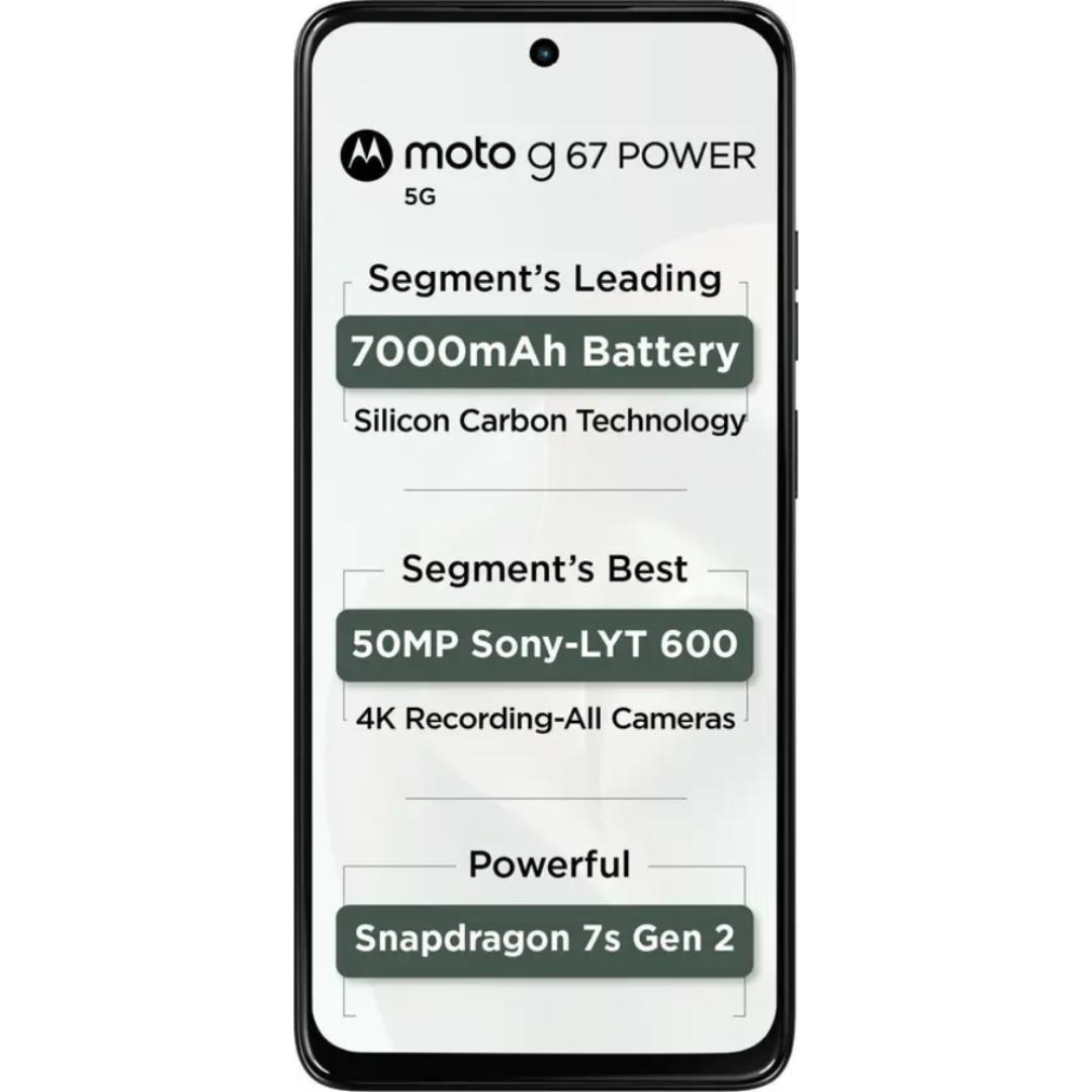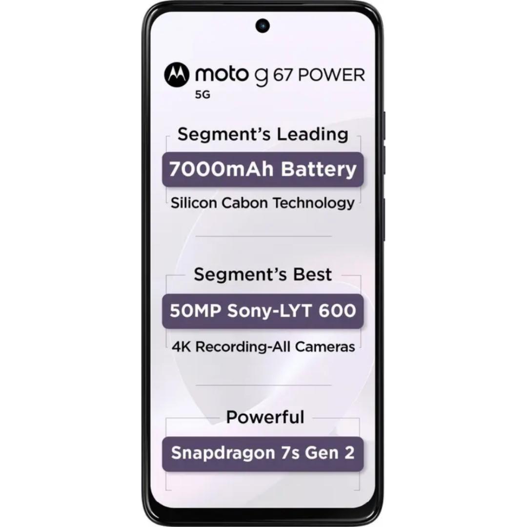 Motorola G67 Power 5G 17.02 Centimeter (6.7) Dual Rear Camera 50MP Sony LYTIA™ 600 Sensor + 8MP & 32 MP Front Camera 120Hz Full HD+ LCD Display Qualcomm® Snapdragon® 7s Gen 2 (4nm) Octa Core Processor Smartphones Mobile