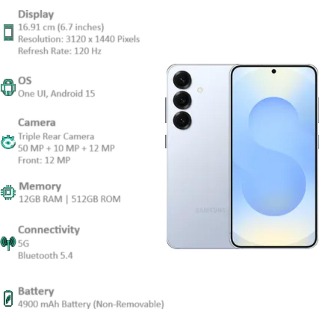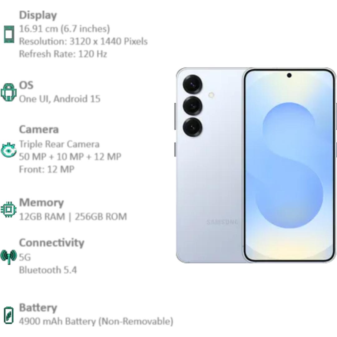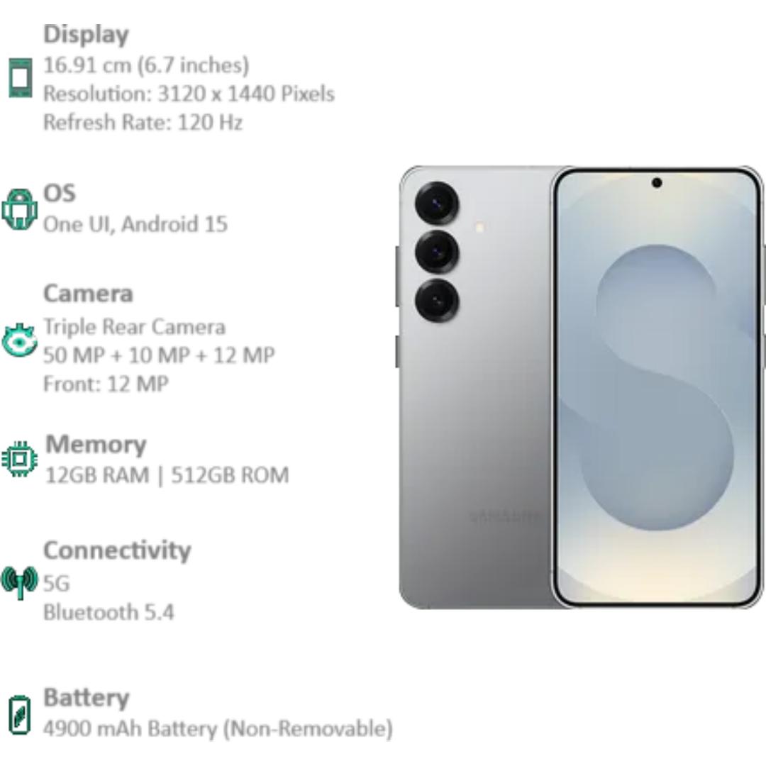 Samsung 15.75 Centimeter (6.2) Galaxy S25 5G Triple Rear Camera 50 MP + 10 MP + 12 MP & 12 MP Front Camera Full HD+ 120 Hz Dynamic AMOLED 2X Display Qualcomm Snapdragon 8 Elite Octa Core Processor Smartphones Mobile