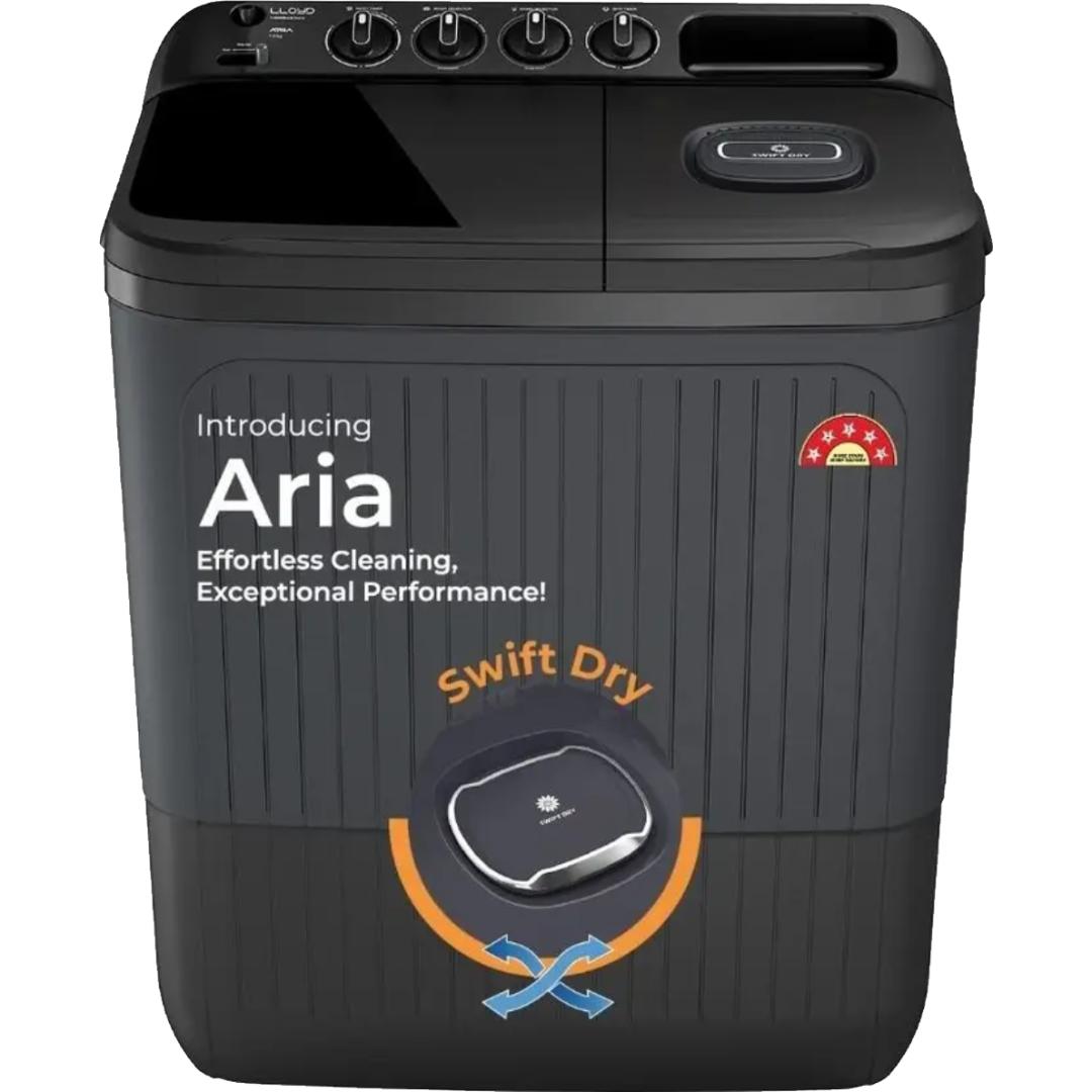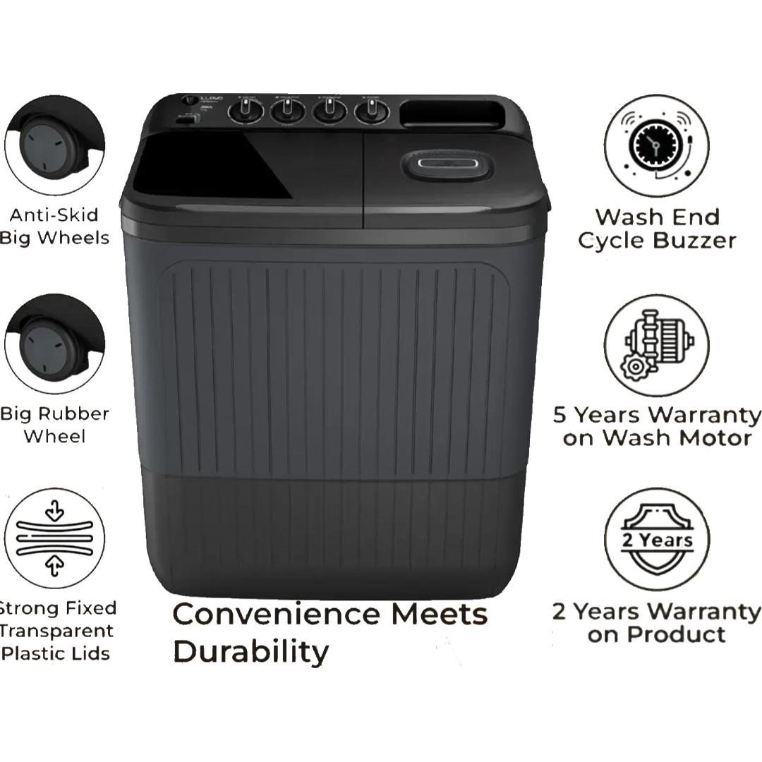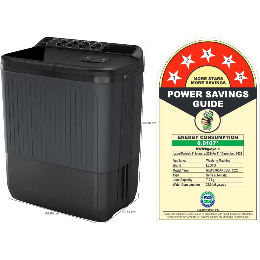 Lloyd 7.0 Kg GLWS705ARDVG 5 Star Elante Pluss Cutting-Edge Advance Technology with Shock Proof Semi Automatic Top Loading Washing Machine (2024 Model, Black Grey)